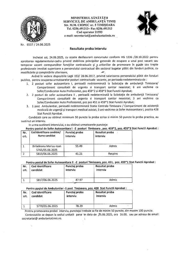 Rezultate contestatie proba interviu concurs soferi