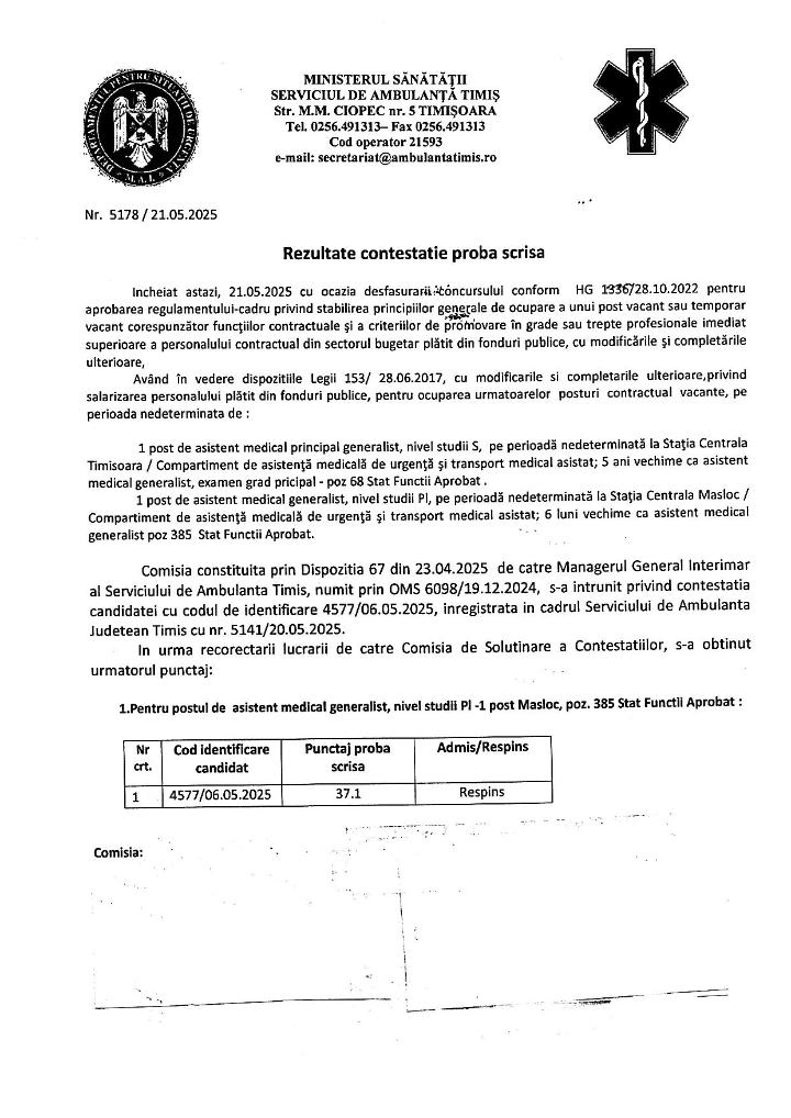 Rezultate cotestatie proba scrisa